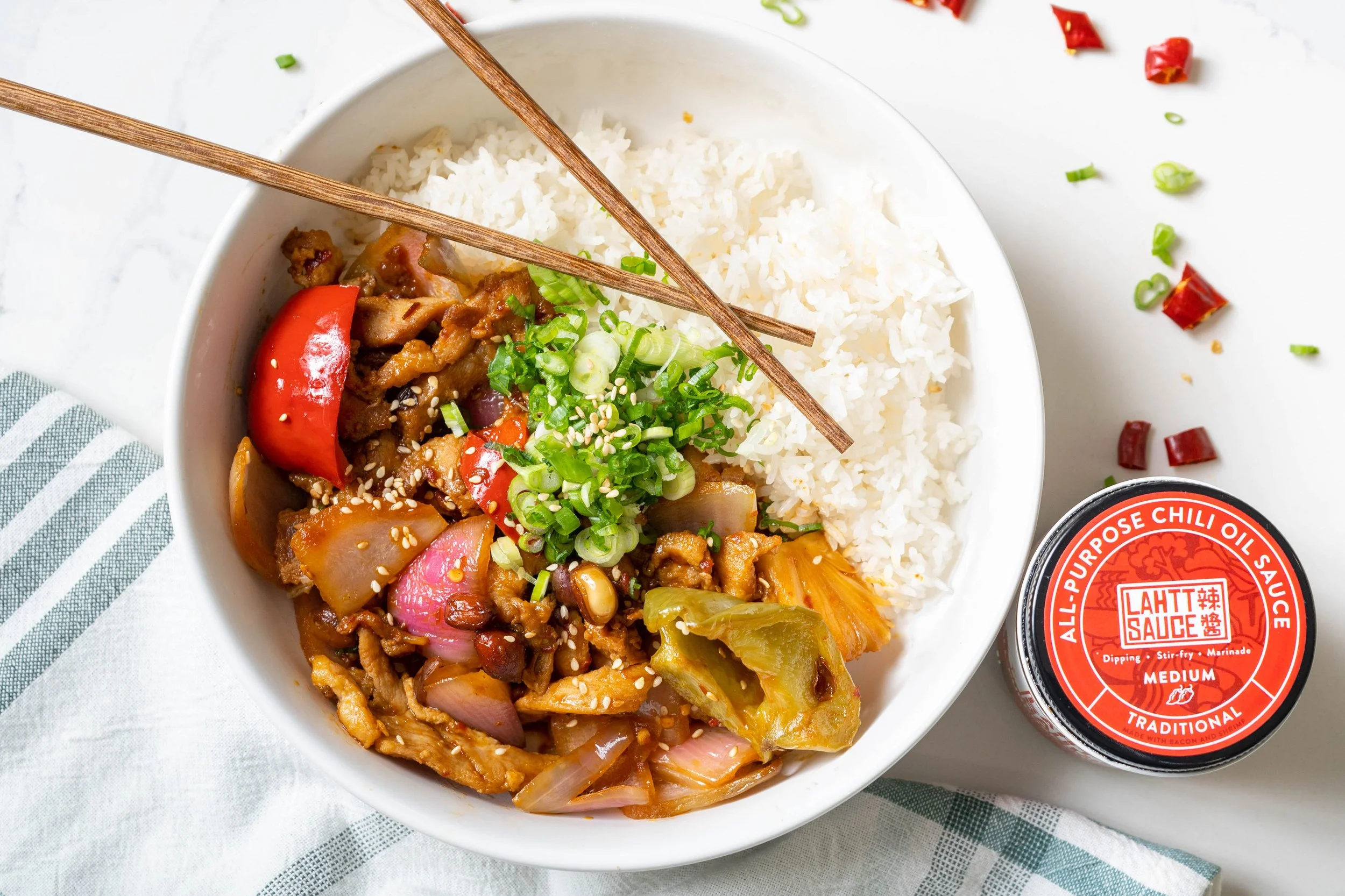 A freelance food photography session. I was trying to capture the essence and color of the Lahtt sauce product with dishes that matches the same color scheme and overall dish aesthetic. Meant to be used for their Instagram page for photo content.